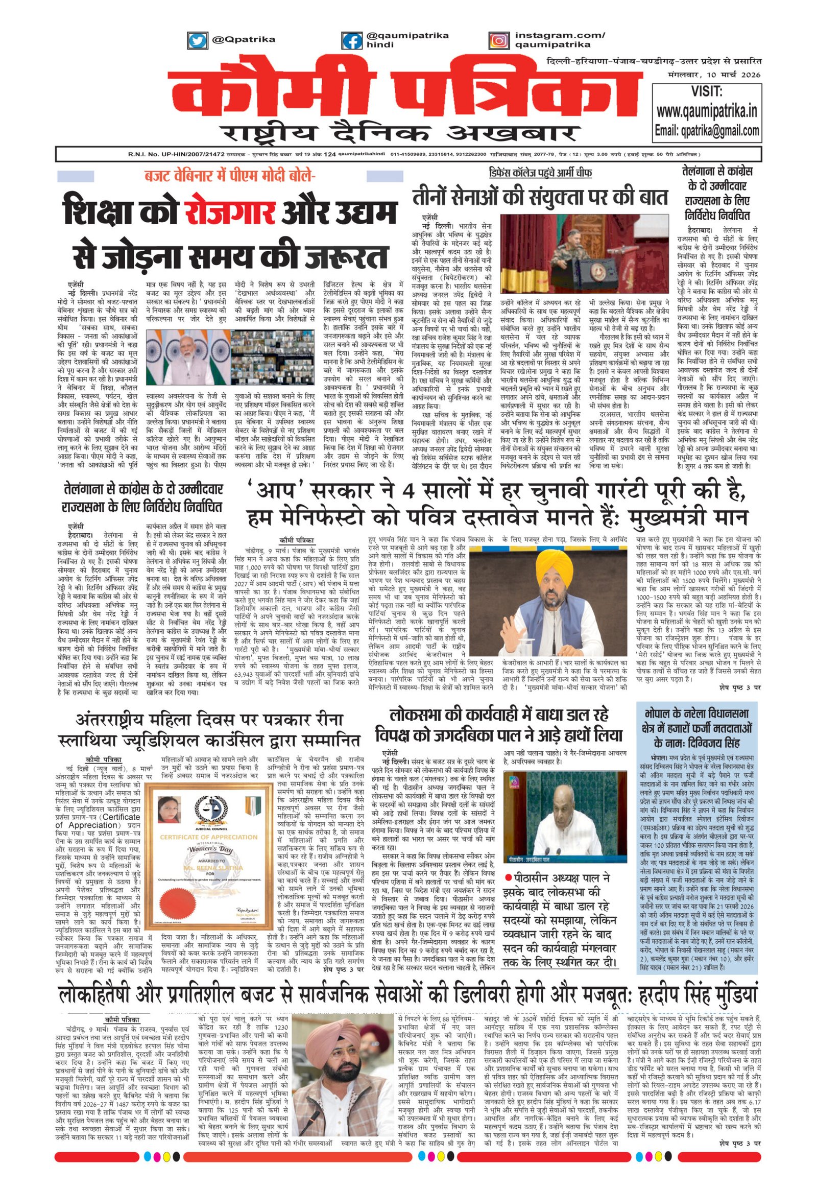 - Qaumi Patrika Hindi, March 10, 2026