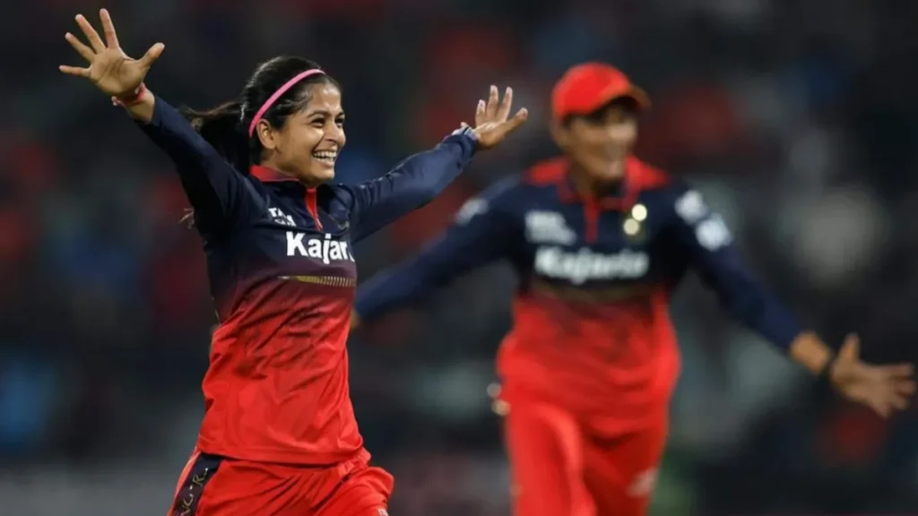 महिला प्रीमियर लीग (WPL 2026) के नौवें मुकाबले में रॉयल चैलेंजर्स बेंगलुरु (RCB) ने एक बार फिर शानदार प्रदर्शन करते हुए गुजरात जायंट्स को 32 रनों से करारी शिकस्त दी। कप्तान स्मृति मंधाना की अगुवाई वाली RCB टीम ने टूर्नामेंट में लगातार तीसरी जीत दर्ज की और अंक तालिका में शीर्ष स्थान पर कायम है।183 रनों के लक्ष्य का पीछा करने उतरी गुजरात जायंट्स की शुरुआत अच्छी नहीं रही। पहले विकेट पर सोफी डिवाइन (8) को अरुंधति रेड्डी ने कैच कर पवेलियन भेजा। अगले ही ओवर में बेथ मूनी (27) भी श्रेयंका पाटिल की गेंद पर आउट हो गईं। कप्तान एश गार्डनर सिर्फ 3 रन बनाकर पवेलियन लौट गईं।